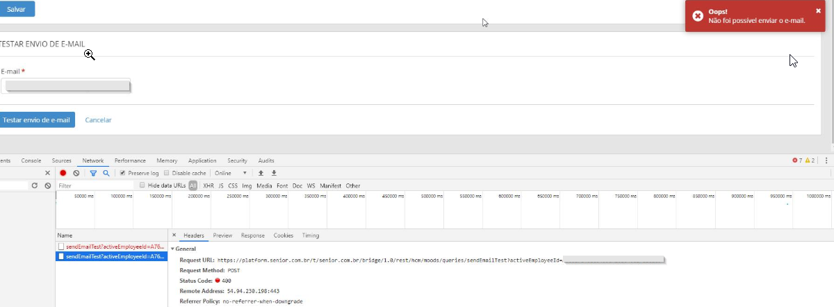 Problema: Validação do e-mail do facilitador de implantação do MOODS apresenta erro Oops! Não foi possível enviar o e-mail.