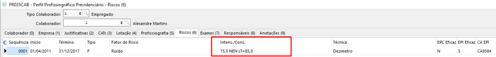 Ao listar Perfil Profissiográfico Previdenciário (PPP)não é gerado NEN (Nível de exposição normalizado) mesmo inserindo 'S' no campo utiliza NEN no cadastro de Agente de risco e Laudo Agente Risco no campo NEN inserindo valor.