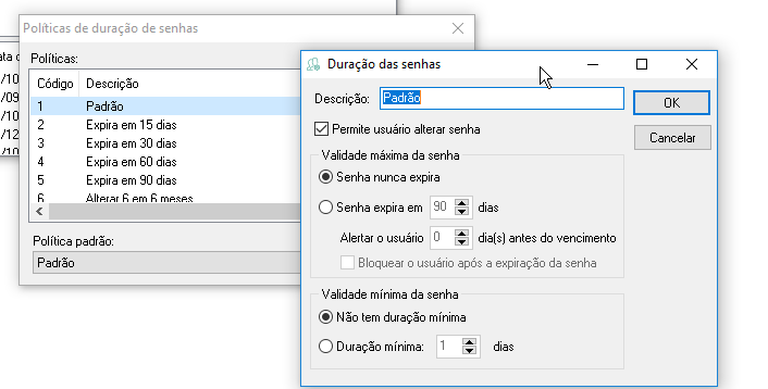 2. Acesse Segurança / Políticas de Senha / Duração de Senhas;