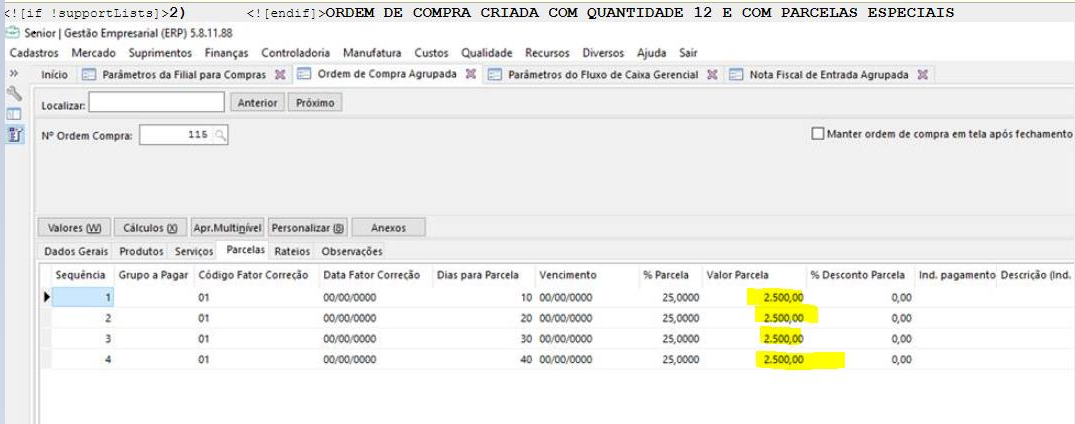 2. Parcela da Ordem de compra;