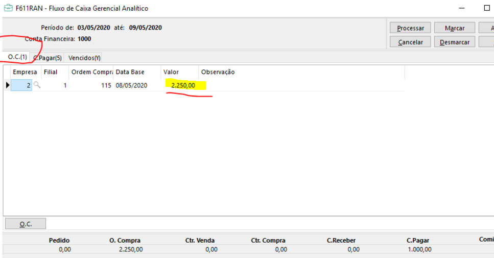 Com isto o sistema está trazendo na despesa.