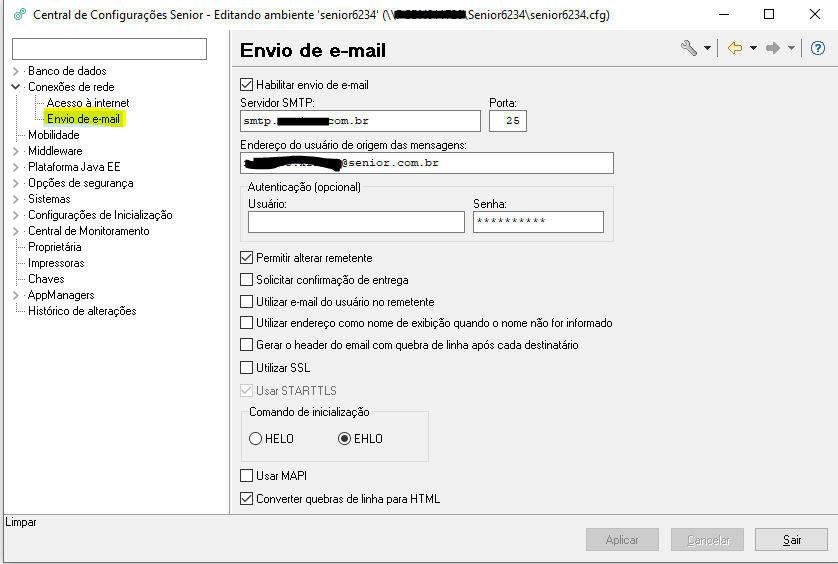 1. Inicialmente o problema pode ocorrer em função de configuração no SeniorConfigCenter, que deve ser verificado pela equipe de infraestrutura do cliente. Exemplo abaixo do local a verificar.