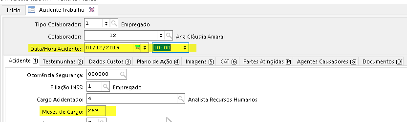 Solução: Os meses cargo é buscado do cadastro de acidentes, conforme o exemplo abaixo: