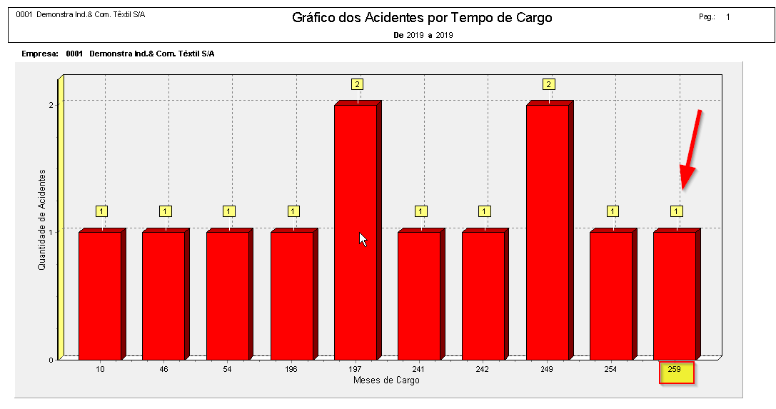 Necessitamos saber de onde puxa as informações que alimentam o gráfico 007 - Gráfico dos acidentes por tempo de cargo. Na tela da ocorrência de acidente, o valor do mês está zerado, ele não deveria puxar automaticamente?