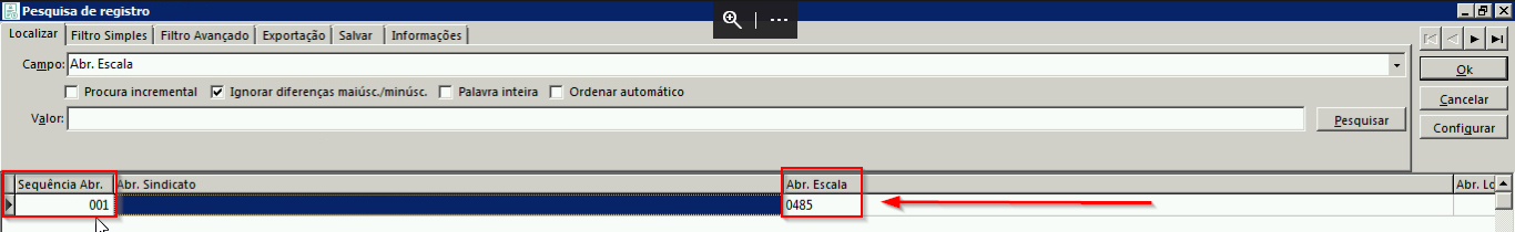 Validamos que a causa raiz era porque existia uma abrangência de escala informada para as estruturas salariais das filiais dos cargos destes colaboradores que era diferente da escala atribuída aos mesmos, conforme exemplo abaixo:
