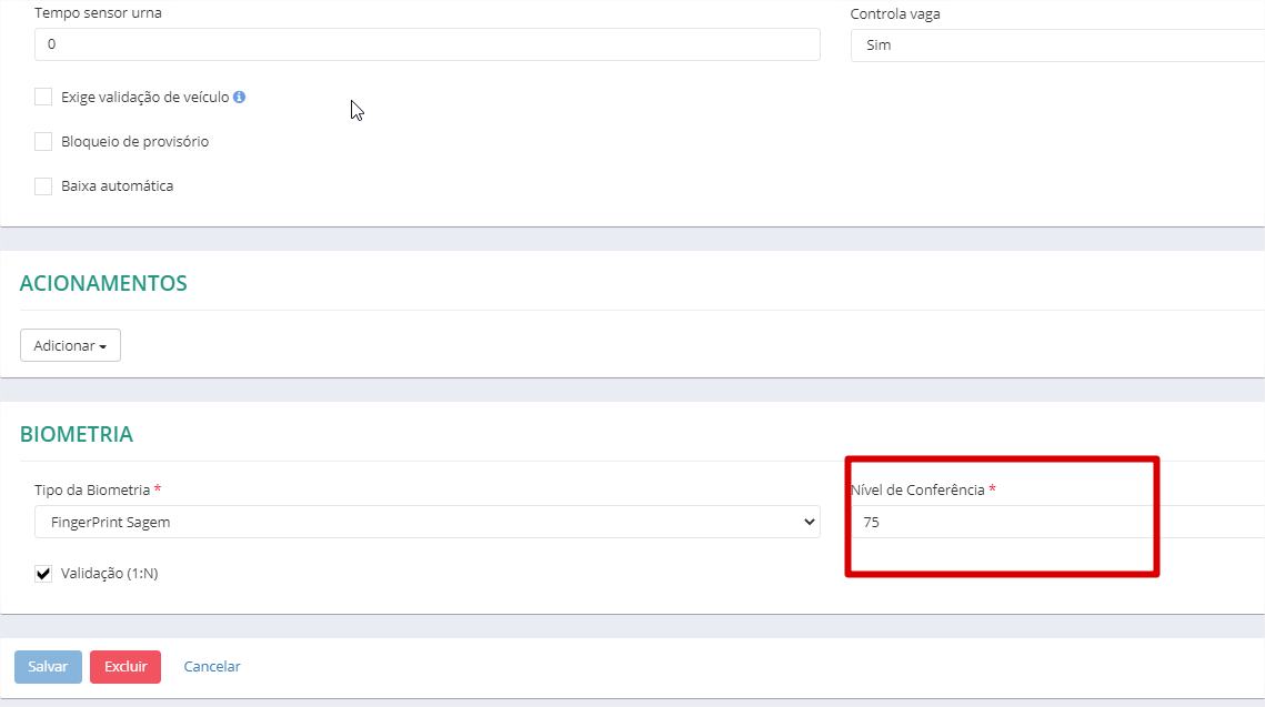 Precisamos alterar o grau de conferência biométrica dos equipamentos pelo sistema.