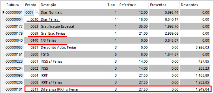 Evento de diferença de IRRF Férias não esta sendo calculado corretamente (Característica 40I e Regra 27) na ficha financeira.
