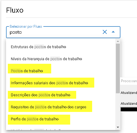 5.2. Selecione os fluxos Postos de trabalho, Informações salariais dos postos de trabalho, Descrições dos postos de trabalho, Requisitos de postos de trabalho dos cargos e Perfis de postos de trabalho: