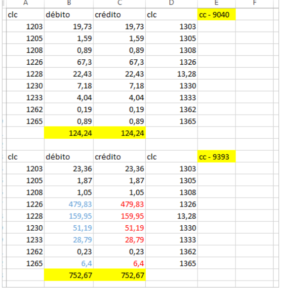 - Clc 1203= 19,73 + 23,36= 43,09 (este total será igual pois os dois são a débito)