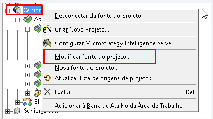 2 - Dentro do Developer clique com o botão direito sob o projeto Senior e selecione Alterar fonte do projeto:
