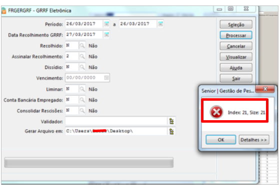 Problema: Ao gerarmos a GRRF ocorre o seguinte erro: