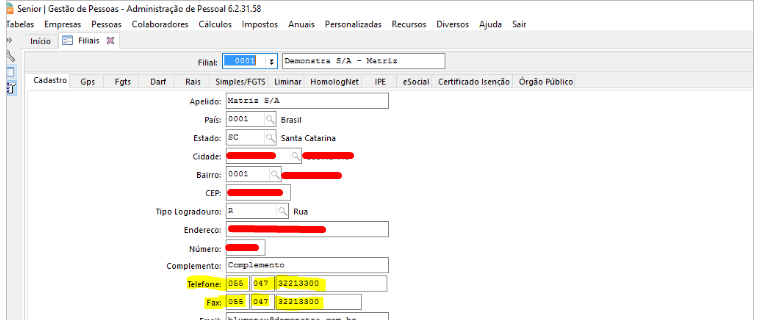 Solução: Quando ocorrer esta mensagem e no botão Detalhes existir o MontaRegistro_10, deve-se verificar no cadastro da Filial, em Empresas > Filiais > Cadastro, se no campo Telefone, as informações estão preenchidas conforme exemplo abaixo: