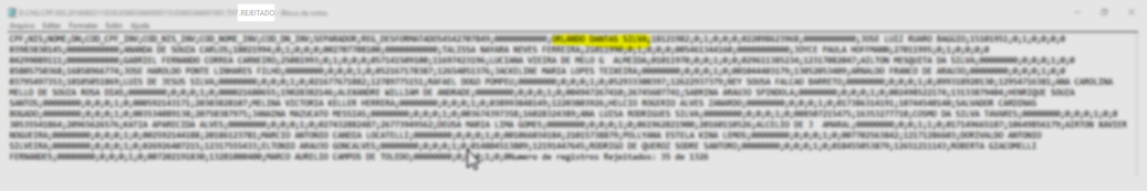 Problema: Ao importar o arquivo rejeitado pelo governo, informa a mensagem Não houve informações a listar.