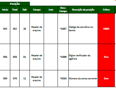 - Erro Código de convênio no banco: Preencher na tela de entrada o recomendado pelo banco;