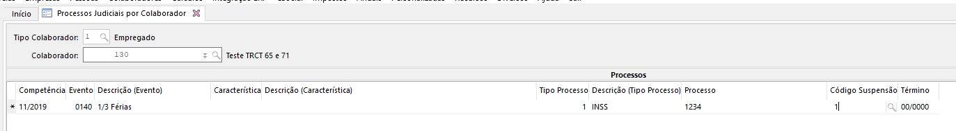 20737 - eSocial - Processo judicial de colaborador