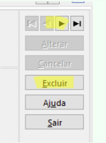 Solução: Para telas onde não é possível abrir a informação, pois se pressupõe que seria uma alteração não permitida, a alternativa é utilizar as setinhas disponibilizadas no canto superior direito para localizar a informação que deseja excluir. Após localizada, basta clicar em excluir: