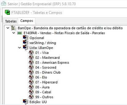O campo BanOpe da tabela E140PAR é uma lista em versões atuais, no entanto, quando ele foi criado ele era um campo 'normal'.