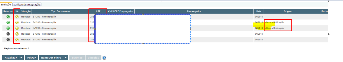 Problema: Preciso realizar a unificação dos arquivos no layout S-1200 no eDocs, devido a possuir sistemas distintos onde o cooperado possui proventos a receber em ambos (porém do mesmo CNPJ). No entanto, conforme anexo, nota-se que que há 5 registros do mesmo cpf e no momento de sua unificação consta apenas 3 registros. Porque existe esta diferença?