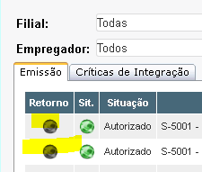 Desta forma, os globos dos leiautes tipo S-5000 ficam com a cor preta e não impossibilitam a visualização do retorno no Administração de Pessoal.