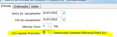 Na aba Entrada, o campo CLC Ajustes Provisões, assinalar com 1: