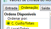 Na aba Ordenação, assinalar: Ordenar por Centros de Custo/Totais