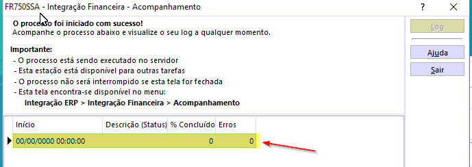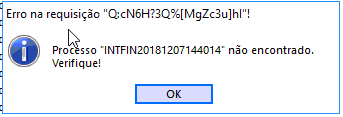 22593 - Integração Financeira ERP - Processar": Processo "xxxxxxx" não encontrado