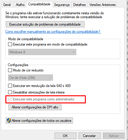 Deve ser mapeado os caminhos dentro do usuário administrador ou tirar o flag para o que o sistema seja inciado com o usuário normal.