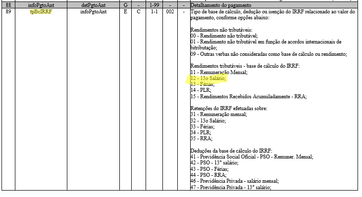 Ou seja, o 13º salário complementar é um evento que se enquadra no tipo de base = 12 (13º salário). Neste caso, a base ficaria negativa, o que não é permitido em virtude da regra de validação acima.