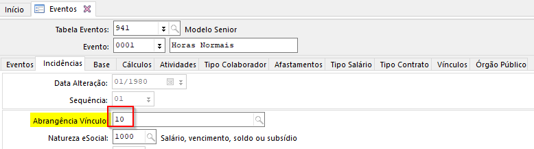Se desejar que outros vínculos também tenham esta incidência respeitada, é necessário indicar os demais códigos no campo Abrangência Vínculo.
