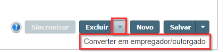 Dentro do cadastro da filial em questão, clique na seta ao lado do botão excluir. O sistema mostrará a opção Converter em empregador/outorgado.