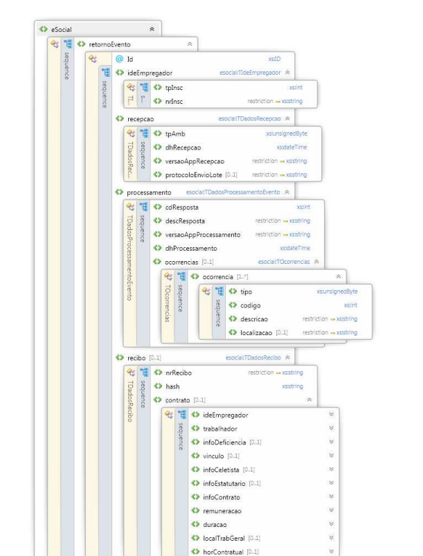 Orientamos a verificar o manual de orientações do Desenvolvedor no portal do eSocial - 6.5. Estrutura do retorno de processamento do evento (segue print abaixo exemplificando a estrutura):