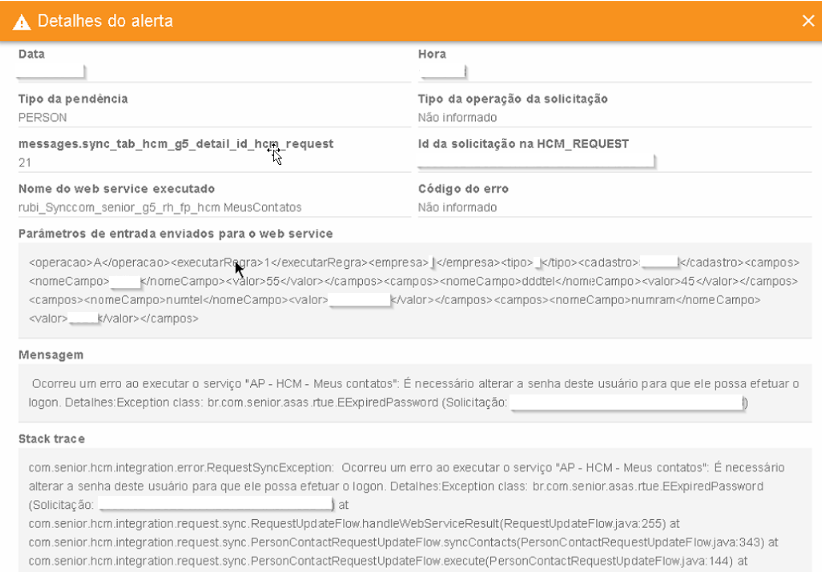 HCM - Integrador HCM - Ocorreu um erro ao executar o serviço 'AP - HCM - Meus contatos'. É necessário alterar a senha deste usuário para que ele possa efetuar o logon