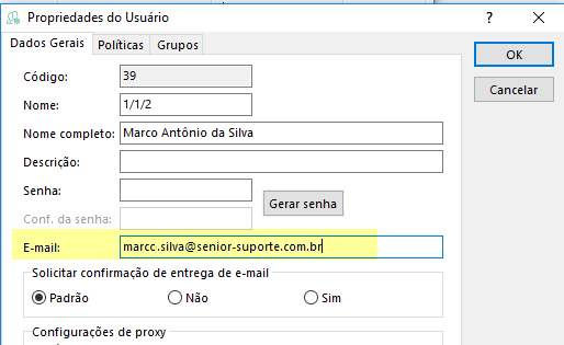 2. Preencha o campo E-mail e salve;