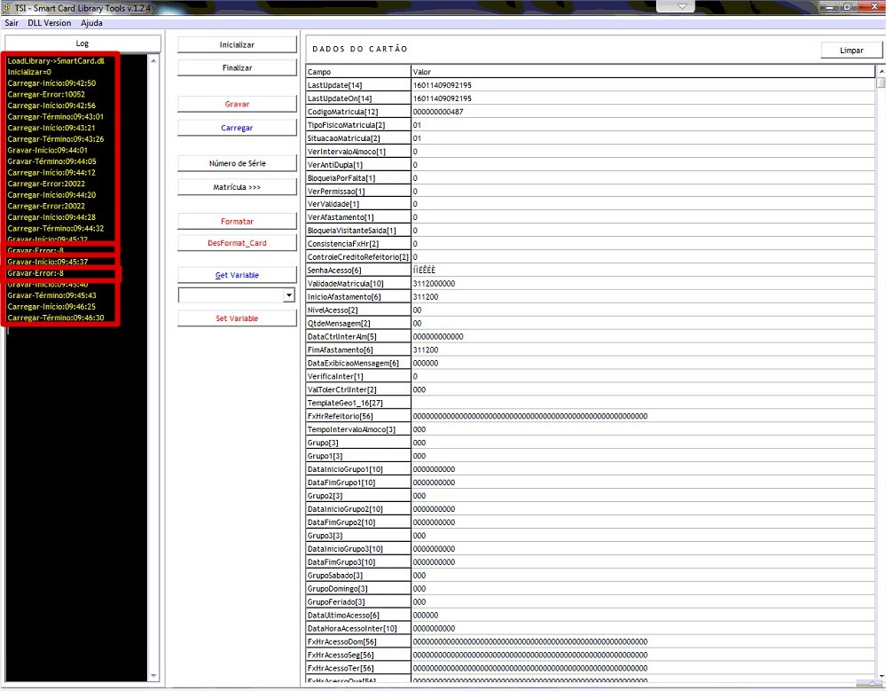 Solução: Solução 1: Tivemos um caso onde a solução foi trocar a máquina onde eram gravados os crachás. Desta forma, deve ser realizado a seguinte verificação: