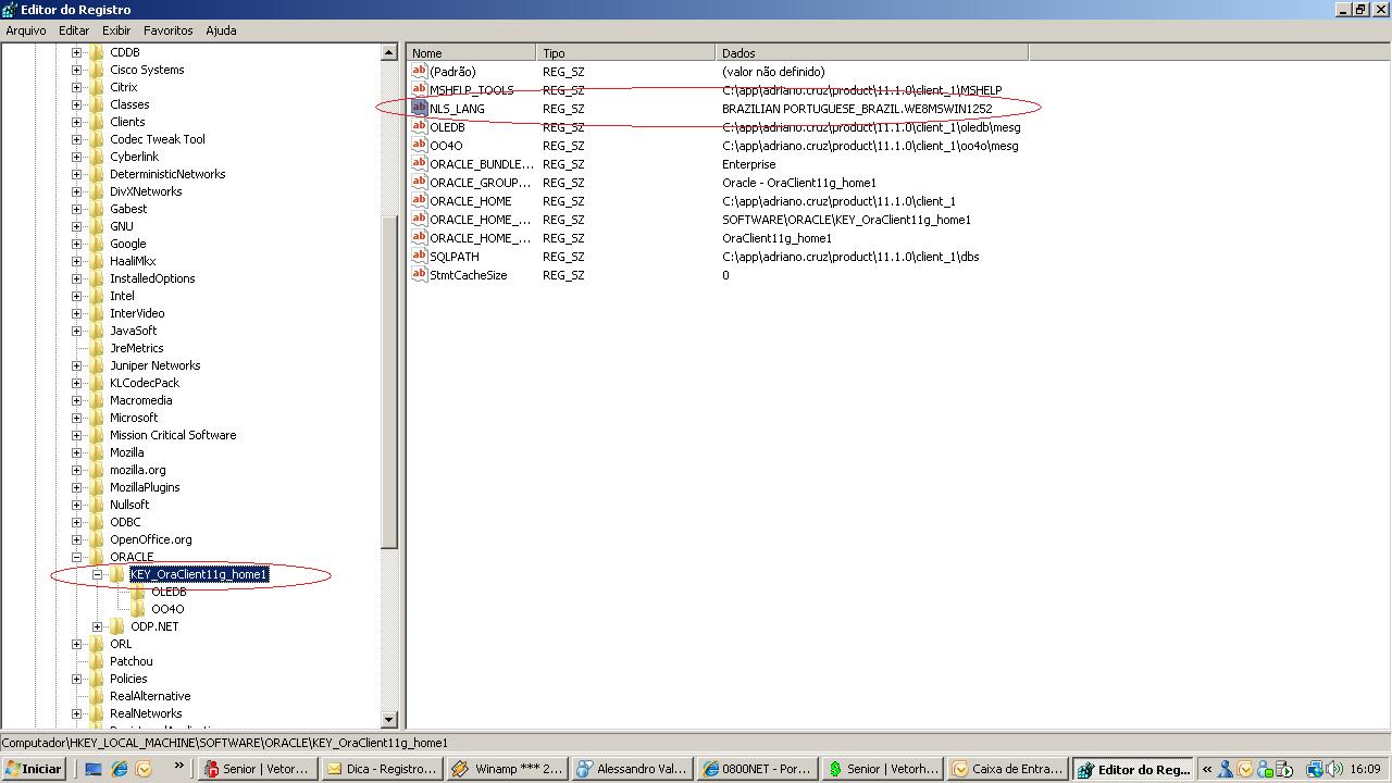Normalmente o registry de cada client se encontra no seguinte caminho HKEY_LOCAL_MACHINE/Software/oracle/ do registro do Windows (regedit).