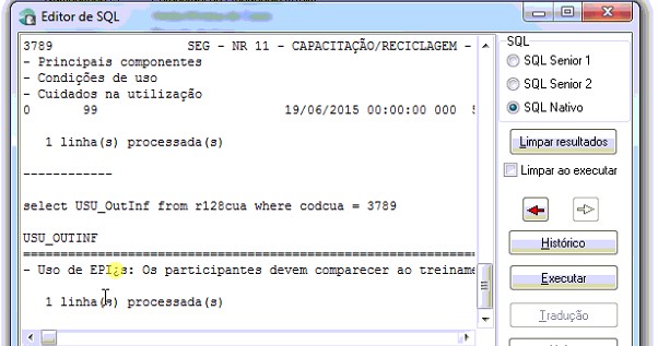 Mesmo ajustando a configuração do código de página entre client e server a mensagem persistir é necessário realizar um select na tabela que apresenta a mensagem de erro e verificar se determinado registro possui algum caracter que não é visível na tela. No exemplo anexo foi verificado que a mensagem persistia ao realizar um cadastro de curso no módulo Treinamento. Ao realizar um select na tabela R128CUA foi evidenciado a existência do caracterer ¿ (decorrente de importação do registros). Este caracter especial que usamos no exemplo pode ser utilizado no sistema, no entanto, o conteúdo apresentado no select deve ser o mesmo apresentado no select. Se apresentar caracteres na consulta no banco e em tela não é necessário ajustar este registro diretamente na base de dados removendo o caracter.