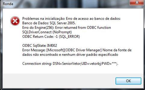 Problema: Instalado sistema parte estação, e ao tentar iniciar, ocorre mensagem Nome do fonte de dados não encontrado e nenhum driver padrão especificado.