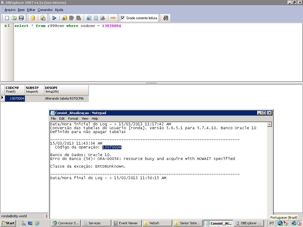 Erro do Banco (54): ORA-00054: resource busy and acquire with NOWAIT specified
