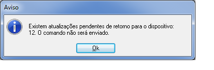 Se estes registros não forem tratados o comando não será enviado e a seguinte mensagem será apresentada: Existem atualizações pendentes de retorno para o dispositivo: XX. O comando não será enviado.