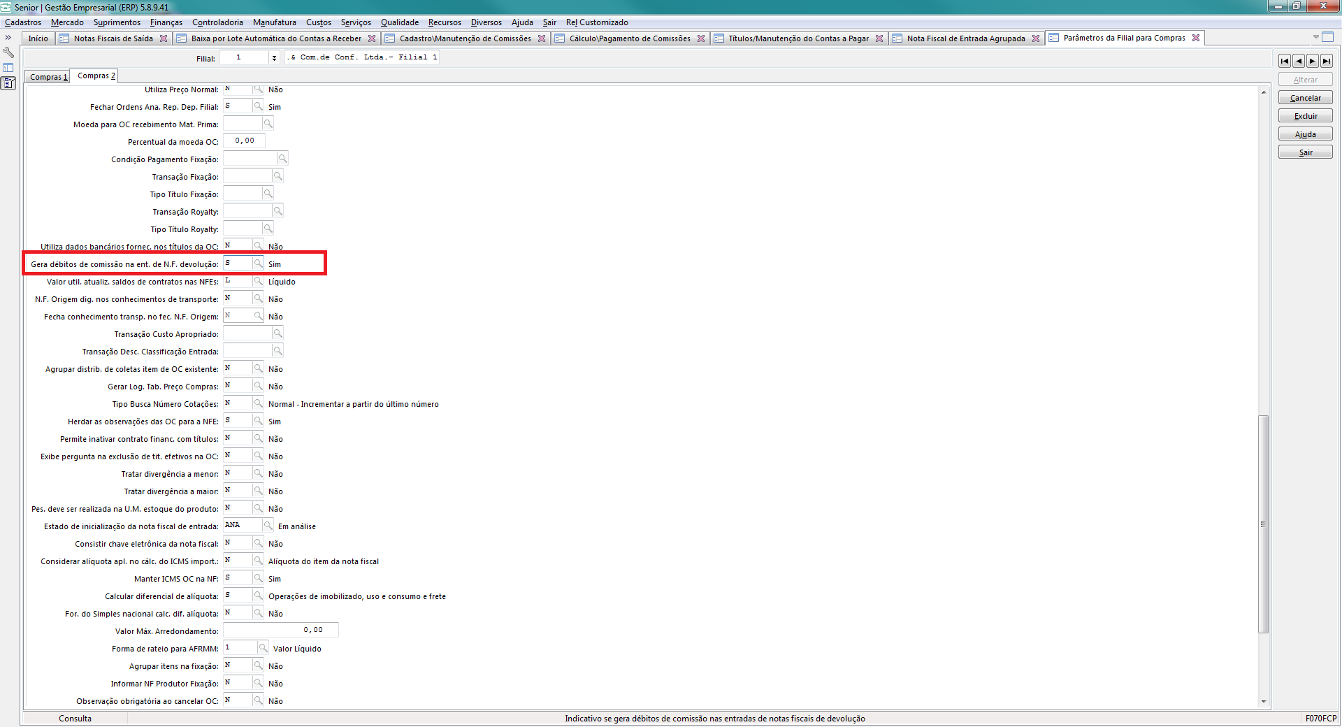 Quando ocorre / onde se aplica: Finanças / Contas a Pagar / Comissões