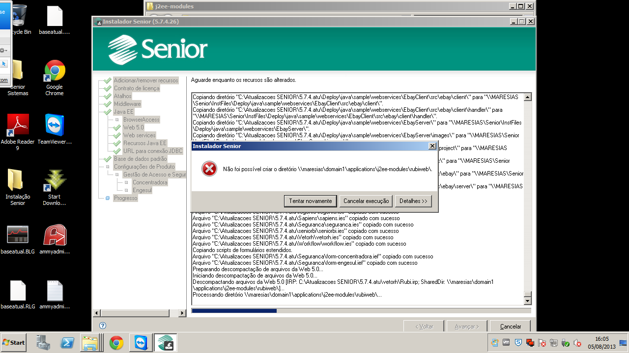 Não foi possível criar o diretório \\maresias\domain1\applications\j2ee-modules\rubiweb\.