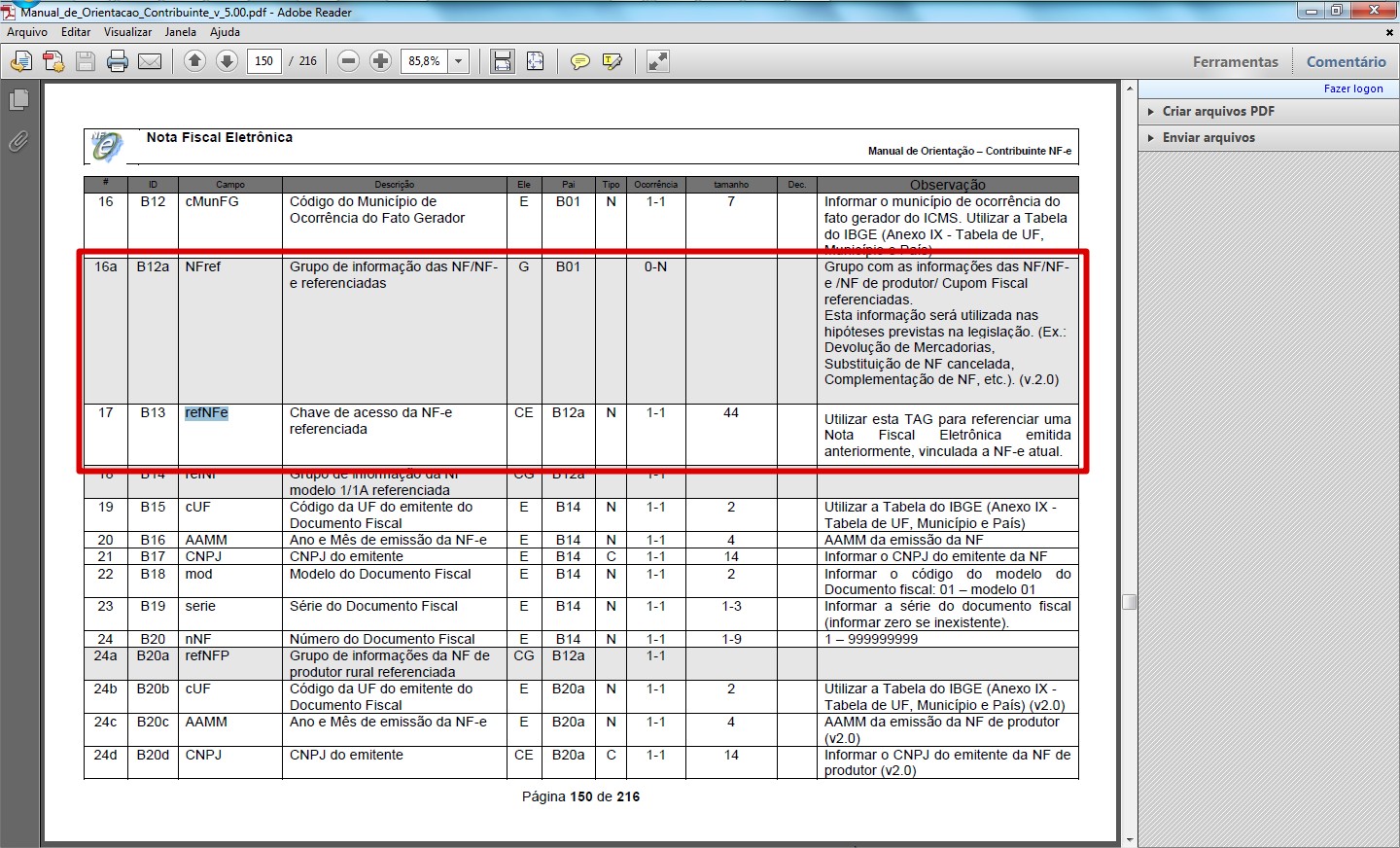 Em anexo tem destacado a questão da tag de referência que está no manual do contribuinte.
