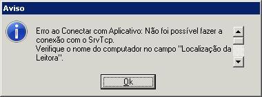 Quando ocorre / onde se aplica: Ocorre em ambientes que utilizam o SRVTCP para conexão com leitora Smart Card.