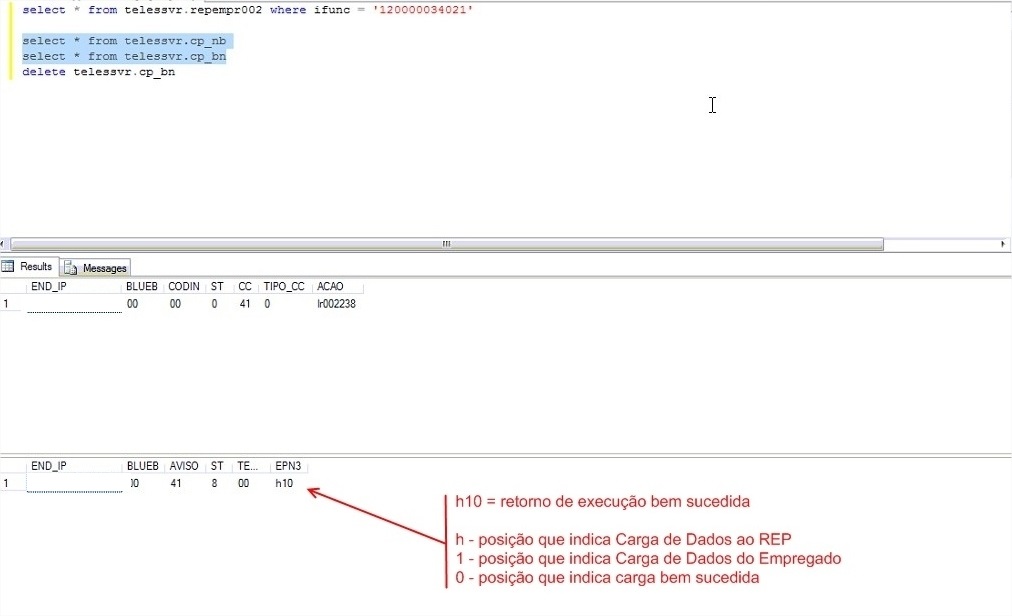 Solução: Verificar o retorno no campo EPN3 da tabela CP_BN da Telemática. Se estiver = H10 (exemplo anexo), significa que o retorno foi executado com sucesso. Neste caso, a Telemática precisa ser acionada para tratar o assunto.