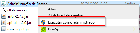 Solução: Para resolver esta situação é necessário inicializar o Administração de Pessoal executando como administrador, ou seja, no atalho ao executar, utilizar a opção Executar como Administrador.