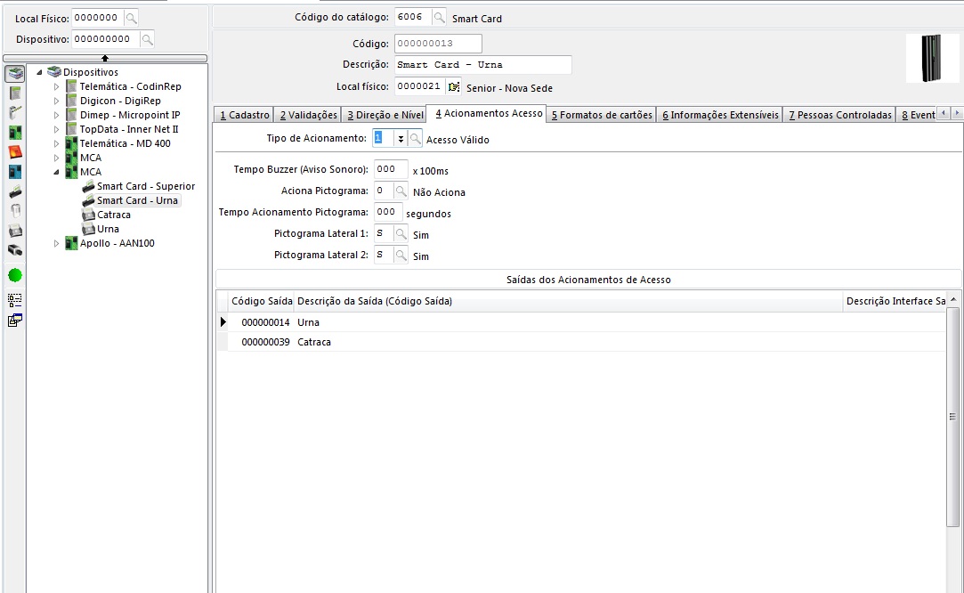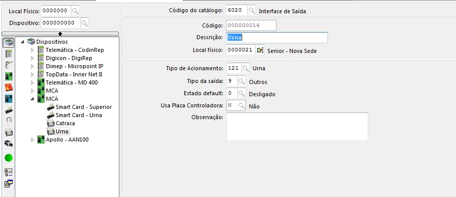 Solução: Para configurar o controle de Urna será necessário cadastrar uma nova leitora (LeitoraUrna.jpg) para a urna e uma interface de saída (SensorUrna.jpg) para acionamento da urna neste dispositivo.