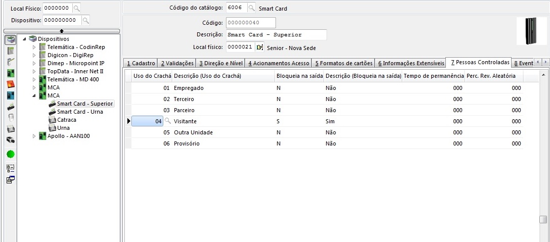 Existe ainda a possibilidade de bloquear determinados tipos de pessoa na saída. Este recurso é normalmente utilizado para que ao passar o crachá na leitora superior seja apresentada a mensagem ao usuário informando para inserir na urna. Para isso, será necessário marcar o controle de Nível na guia "Validações" da leitora da Urna (ControlaNivel.jpg) e na guia "Pessoas Controladas" da leitora Superior, (não a de Urna) será necessário alterar a coluna "Bloqueia na Saída" para SIM (PessoasControladas). Lembrando que o bloqueio na saída deve ser aplicado apenas para as pessoas que não podem sair na leitora superior e obrigatoriamente devem utilizar a urna.