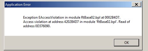 Exception EAccessViolation in module RtBase02.bpl at 0002B4D7.