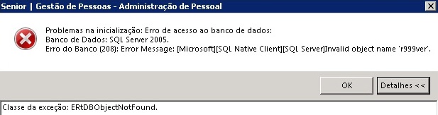 Erro do Banco (208): Error Message: [Microsoft][SQL Native Client][SQL Server]Invalid object name 'r999ver'.