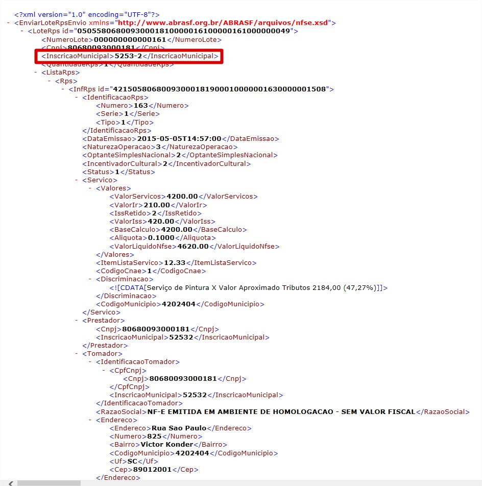 Solução: Para esta exigência terá que ser utilizado o identificador GER-000ABRASF1, pois ele permite alterar a Inscrição Municipal do XML gerado pelo ERP, colocando o valor fixado conforme segue exemplo abaixo, com isso o XML será integrado com o eDocs, pois irá ter o hífen.